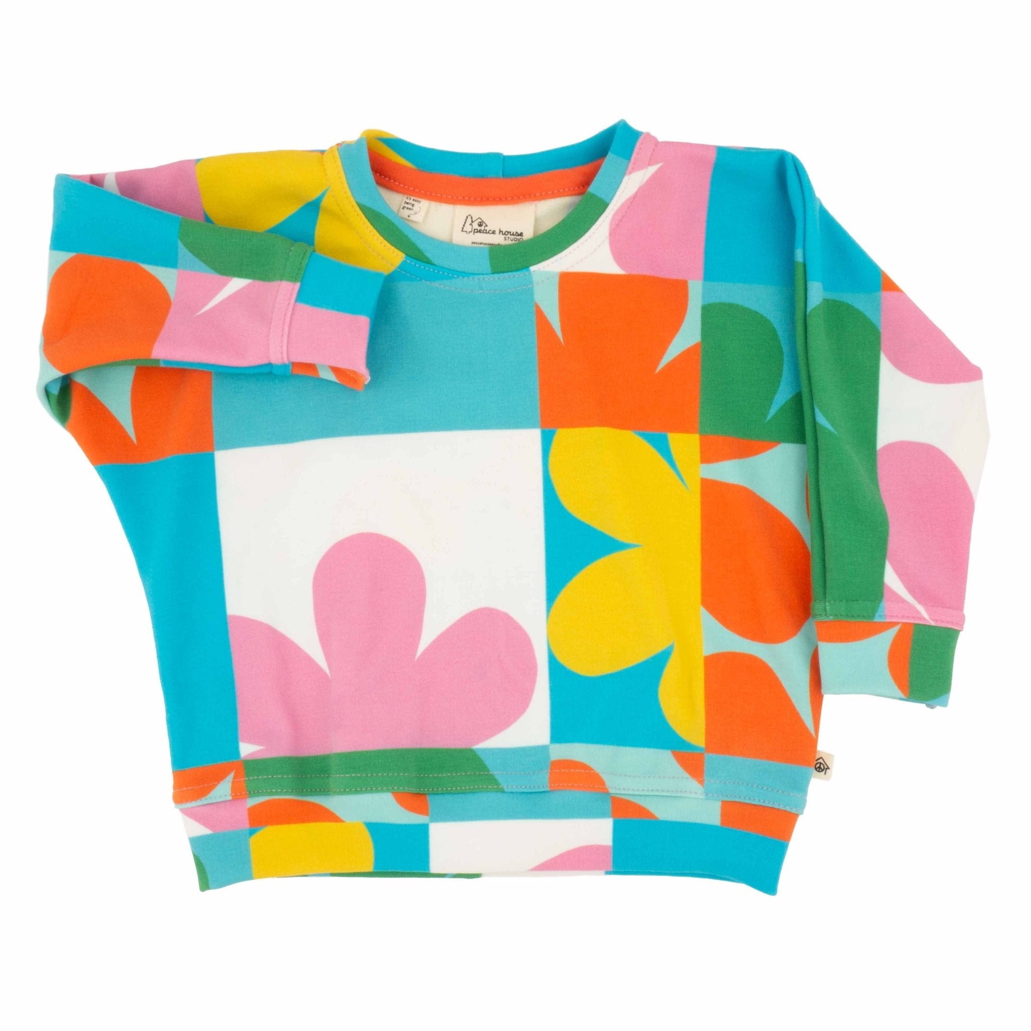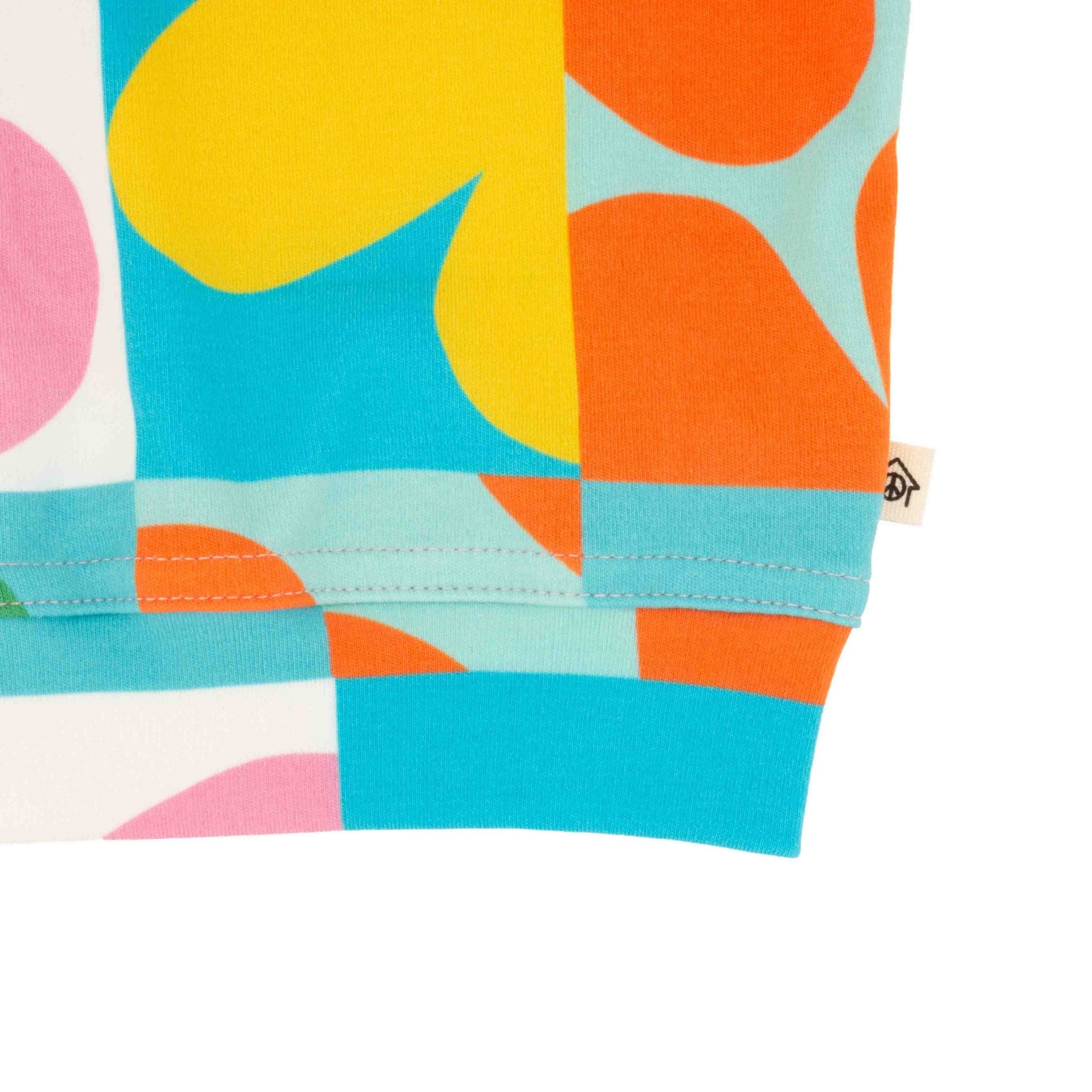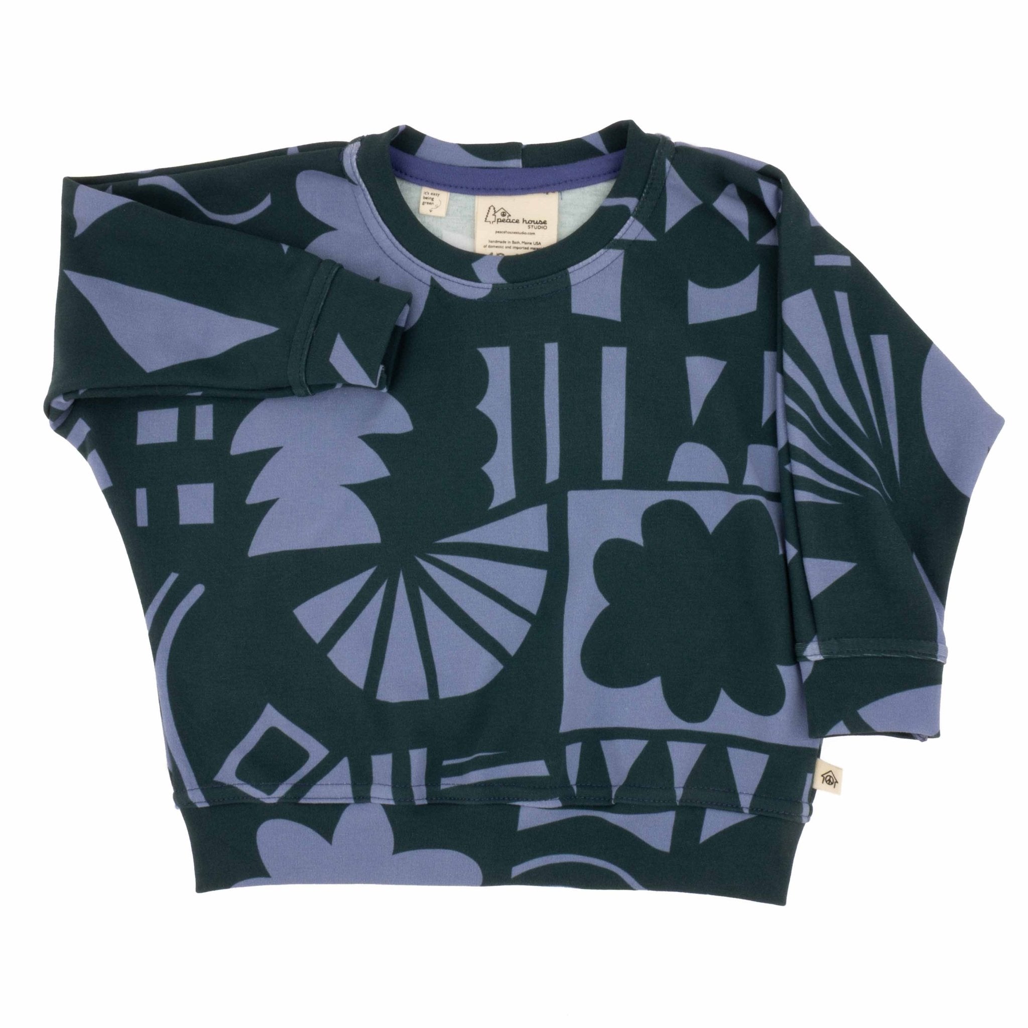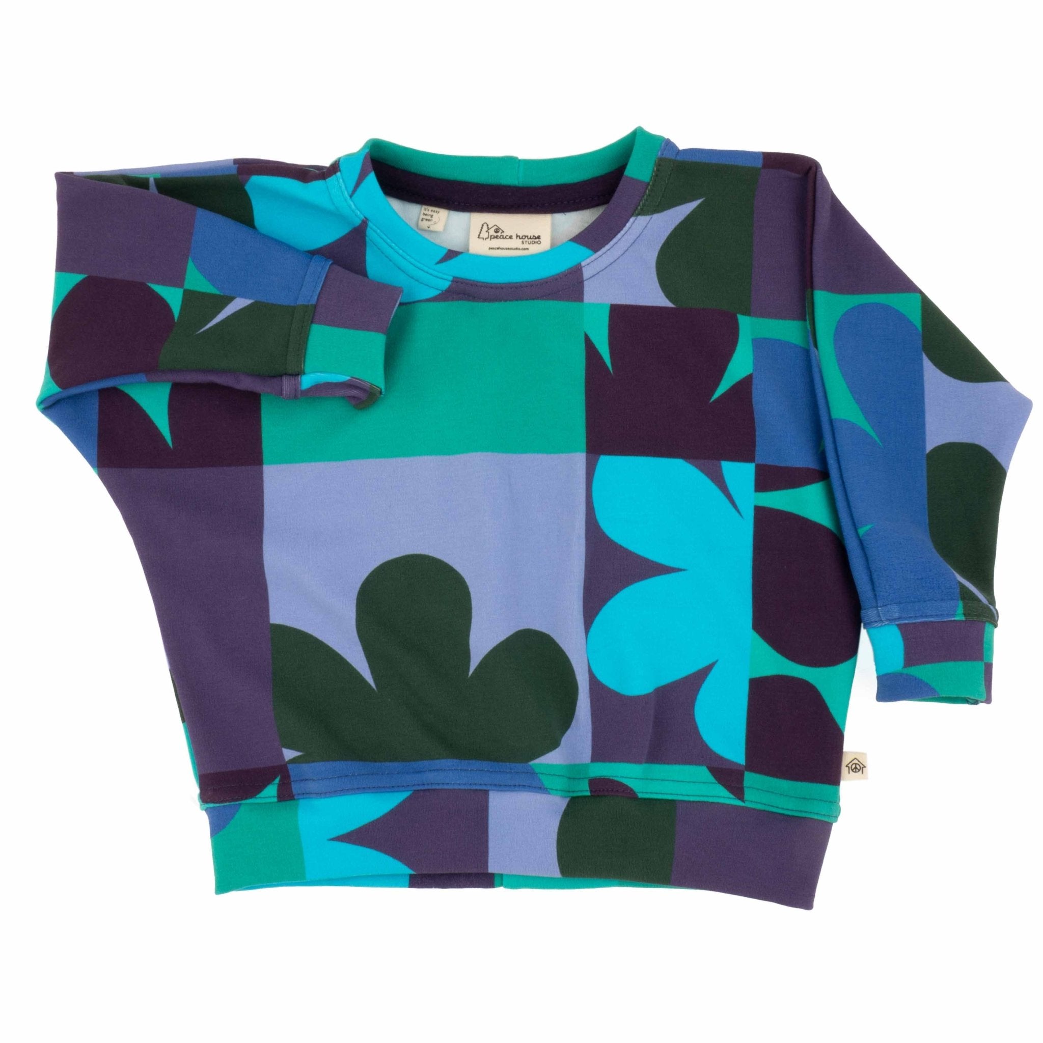 • Moonflower – A rich patchwork of blues, greens, and purples with oversized floral shapes for kids who love a little drama in their wardrobe.